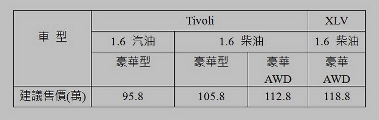 至於持採用與Tivoli相同軸距與底盤架構,車長較Tivoli長了238mm的XLV可說是Tivoli的加長版。在車長增加之下,後行李箱容量高達1,440公升,標準5人座配置下,即能輕鬆裝入四個大型行李箱,更配有摺疊式行李隔板與行李遮陽隔板,使得乘用空間更為靈活多變。無論是日常通勤與假日出遊,皆能滿足精采生活的所有嚮往。