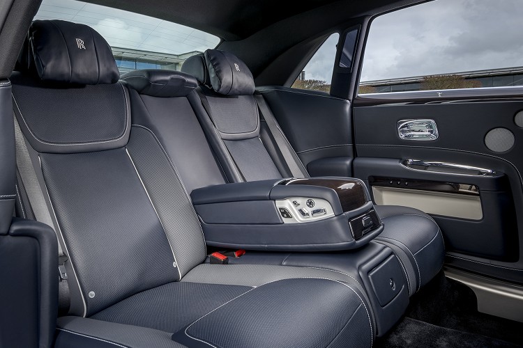 此設計主題展現強悍性能及沈穩車格,兩款車型以不同車色詮釋。Paragon Ghost標準軸為午夜藍色,Paragon Ghost長軸採用黑櫻桃色,卻同樣深邃、耀眼。此色調延續至內裝設計,座椅及車門皆由深色皮革包覆,Paragon Ghost標準軸採用深藍色,Paragon Ghost長軸配備黑色,座椅中央由散發冷冽、礦物質感的墨灰色的特製皮革點綴。前後車門收納空間內襯的淺色對比色猶如薩維爾街的訂製西裝,細膩點綴為經典的內斂增添獨特氛圍,與西裝外套的胸袋巾功效如出一徹,Paragon Ghost標準軸置物箱內側區域顏色採用海貝殼色、Paragon Ghost長軸為棗紅色。如同其他勞斯萊斯車款使用的皮革,Paragon Ghost 車型採用能頂級牛皮,並經過嚴格挑選,在內部工匠親自排除瑕疵物件後才能夠使用。座椅緄邊採用同樣的對比色調,並更加帶出座椅的精美輪廓,且前後座椅頭枕上皆繡有「RR」徽飾。