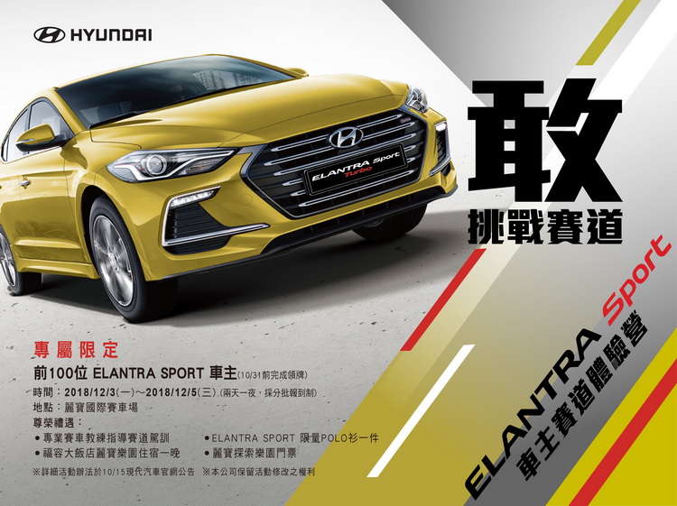 送麗寶賽道體驗! HYUNDAI ELANTRA Sport 預售84.9萬元起