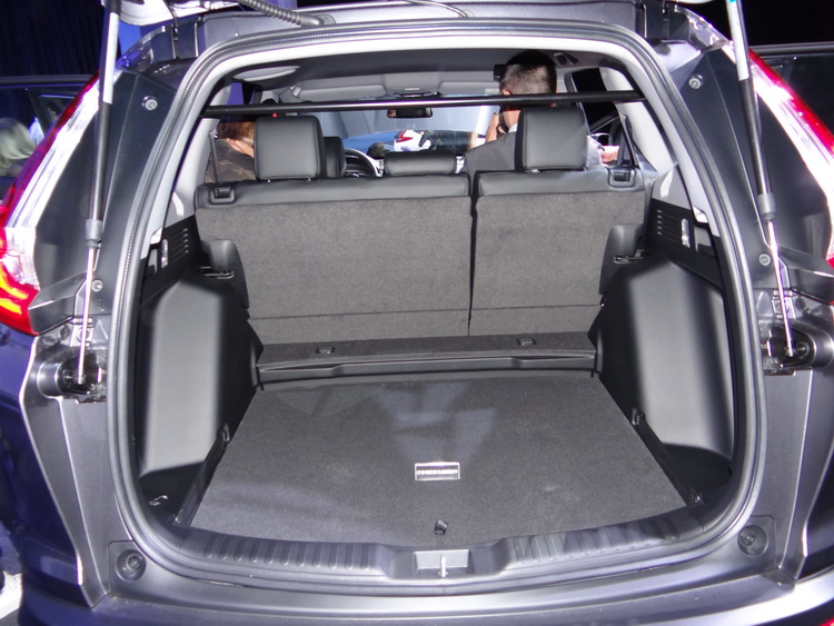 Honda CR-V搭載全景式電動天窗、可自行設訂開啟高度的電動尾門(S等級), 提升了更強烈的科技質感及明亮便利的使用介面。Honda CR-V以Honda引以為傲的「MM思想-人性空間最大化、機械空間最小化」的概念,打造出舒適、寬敞的車室空間,及容易使用的優越置物機能。