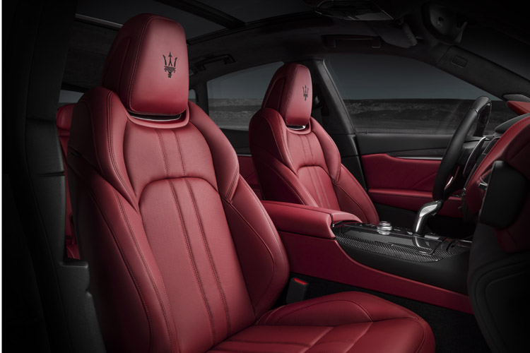 做為家族高階車款之表率,Levante GTS換上和Levante Trofeo相仿的運動化前保桿,兩側的垂直導流槽有效改善整體空力效應,進一步強化高速行駛穩定性;與車身同色的前、後下擾流,則有助降低視覺重心,輔以黑色鋼琴烤漆飾板點綴,賦予Levante GTS低調且不張揚的造型語彙。然而,輕量化20吋鋁圈,配上前380mm六活塞、後330mm的大型煞車卡鉗,仍隱藏不住Levante GTS的張狂性能,使其可在極短的34.5米內由時速100公里煞停靜止,確保隨時都具備最優異的制動能力。