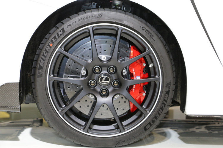 ![]() RC F 全車系亦搭載TORSEN LSD限滑差速器,搭配為RC F專屬開發的Michelin Pilot Sport 4S頂級性能胎,在激烈操駕下,提供絕佳的循跡性與操駕樂趣。剎車系統方面,RC F採用Brembo 前對向6活塞、後對向4活塞與前380mm、後345mm剎車碟盤。