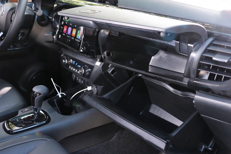 HILUX外觀豪邁不羈,內裝設計亦堅持不妥協。為讓駕駛能夠在盡情Off-Road的同時擁有SUV般的舒適感,全新HILUX以全新人體工學的介面配置及駕駛輔助系統打造車室座艙,當消費者進入座艙,定能感受到全新HILUX的整體座艙空間相當寬廣,視野相當開闊;此外,全新HILUX搭載多項科技及舒適配備,如TOYOTA Drive+ Connect智聯車載系統(4G旗艦版),搭配9吋螢幕、智慧導航、一鍵救援與24小時愛車守護等便利功能,以及AUTO恆溫空調(附後座空調出風口)、8向電動調整駕駛座椅等舒適設計,打造出能讓車主盡情享受駕乘體驗的高質感機能座艙。