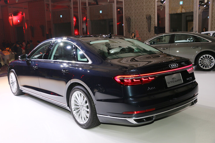 在動力方面,共有A8 50 TDI quattro以及A8 L 55 TFSI quattro Premium 兩種不同配備等級的選擇,分別搭載3.0 升V6 TDI柴油 / TFSI汽油渦輪增壓引擎,提供最大馬力286hp 與340hp充沛的動力輸出,而且全車系標配quattro 智慧型恆時四輪傳動系統,以及48V 輕型複合動力系統。此輕型複合系統讓Start/Stop 的作動時速提高至 22 km/h,鋰電池亦能協助在引擎熄火滑行期間,供應電力至各個12 V附屬裝置,並且在引擎耗能較大的起步階段,透過48V輕型複合動力系統中的皮帶式啟動馬達增加動力,讓啟動更為平順舒適且快速。在55至160 km/h之間行駛時,放開油門就能以引擎熄火方式滑行,最長可以維持滑行約 40 秒,同時此全新系統更可提供高達12 kW 高能量動力回收,能利用車輛動能發電,進而運用電力驅動車內的電系輔助功能。