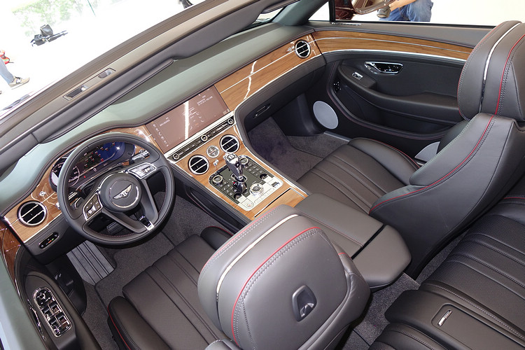 敞篷款展示車![]() 另一款Continental GT V8 Convertible敞篷車,除了車身外觀選用了“Cricket Ball”特殊車色和鍍鉻處理的前保桿格柵,主要選配都集中在內裝上。
