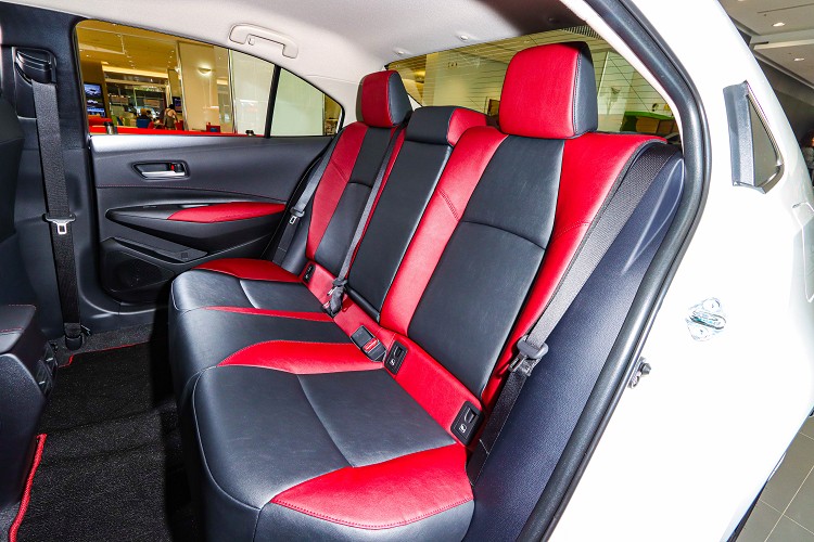 全新Corolla Altis GR Sport擁有專屬跑格套件,霸氣的蜂巢格狀進氣壩,搭配勁黑車外後視鏡、燻黑LED光條式尾燈、17吋亮黑切削鋁圈,以及車尾GR Sport專屬銘板,運動化的強悍外觀,宛如蓄勢待發的猛獸。車室採用熱血感十足的專屬紅黑雙色內裝,前座頭枕附GR字樣烙印,汽油車型另搭載方向盤換檔撥片附七速手自排功能,各種專屬跑格設計燃燒熱血靈魂。