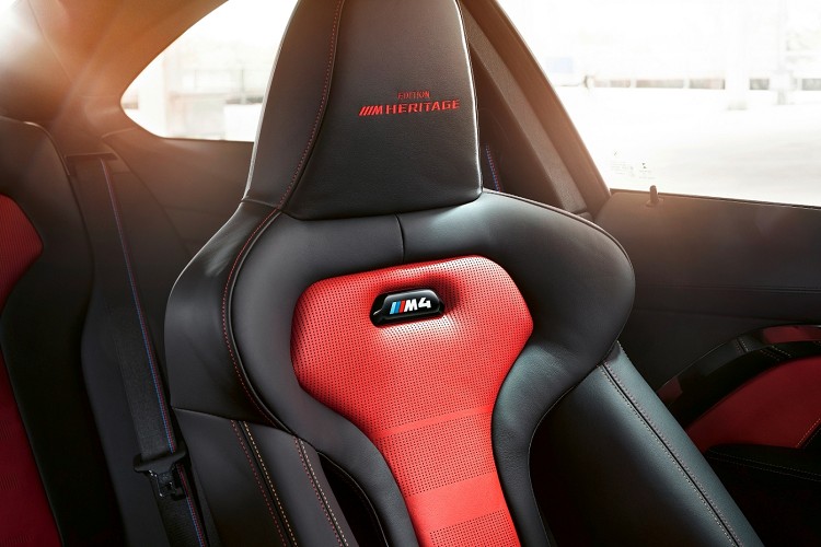 座椅頭枕繡上「Edition /// M Heritage」字樣以及迎賓踏板與碳纖維紀念飾板上的「Edition /// M Heritage」和「1/750」專屬印記,成為BMW M4 Edition ///M Heritage的獨具特色;其中為BMW M4 Edition ///M Heritage量身打造的專屬碳纖維紀念飾板,以M Logo三色交織而成,強韌輕量又與眾不同的設計語彙為前座駕駛與乘客更安全無虞且獨具一格的感官享受。