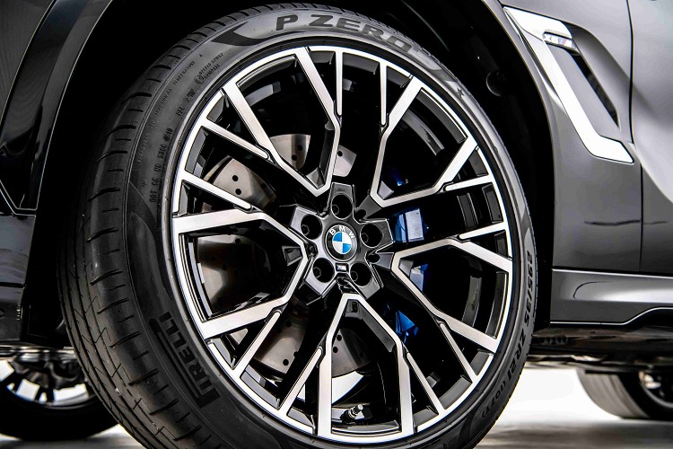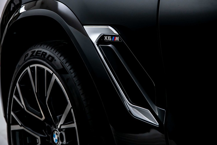 擁有雙邊雙出黑色排氣尾管的M運動化排氣系統,讓X6 M排氣聲浪更為狂野渾厚,每一道引擎聲響都能將駕駛者的血液燃燒沸騰;M空力套件與全新X6 M專屬的前21、後22吋M星幅式809M型輪圈,展現出不容錯認的X6 M經典M系列血統。湛藍色且標示”BMW Laser”字樣的智慧雷射頭燈(含Glar-free光型變化功能)更列為全新BMW X6 M標準備配,除了提供駕駛者最高科技的照明系統外,更顯示其車款不凡的地位象徵。