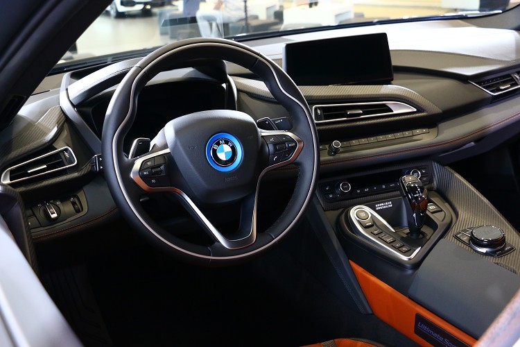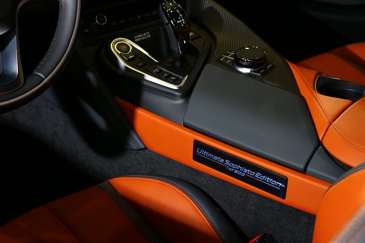 1/200珍稀席次 全新BMW i8 Ultimate Sophisto Edition特仕版作為全球銷售最佳的插電式油電混合動力跑車,BMW i8車系以極具未來感的前衛設計和車格設定,為新世代跑車勾勒出嶄新樣貌,提前實現未來的無限可能。全新BMW i8 Ultimate Sophisto Edition特仕版Coupé車型,外觀車色以「Sophisto Grey 深灰色」單一選擇以彰顯其獨特性,外觀上有別於標準BMW i8車系,配備了其專屬的銅色雙腎型水箱護罩邊框、銅色側裙飾條、銅色車尾飾條、20吋多輻式黑銅雙色烤漆輪圈等套件,而車尾兩側耀眼的透明玻璃尾燈也讓視覺上更具科技感;煞車卡鉗則以高光澤黑色烤漆處理,並帶有象徵電能車款的藍色細節和BMW i標誌,突顯其出眾的性能風格。