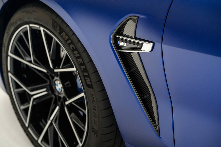 百年來堅持以頂尖工藝品味與創新科技打造車款的BMW以優雅流暢的跑車線條勾勒出BMW M8令人震懾的磅礡氣勢,無論是俐落的雙門Coupe設計或大器非凡的四門Gran Coupe車款,BMW將全新BMW M8佇立於頂級奢華舞台的聚光燈下。鑲有M8銘牌的黑色高光澤雙肋造型水箱護罩與鍍鉻外框,搭配侵略性十足的湛藍色智慧雷射頭燈(含Glar-free光型變化功能)頭燈,讓BMW M8一出場就奪取眾人眼光;銳利的引擎蓋與車側鈑件肌理線條,一路延伸至後擾流尾翼,營造結合力與美的速度律動;前下擾流與前進氣壩搭配車側如迴力鏢造型的導流氣孔,除滿足賽道規格散熱系統的嚴苛進氣需求,更注入蓄勢待發的競速氣勢;完勝風阻的M空力套件與全新BMW M8專屬的20吋M星幅式811M型輪圈,展現出不容錯認的經典M系列血統;兼具輕量化與堅固強韌的M碳纖維車頂,為這台頂級跑車在肆意馳騁、破風而行時如虎添翼。