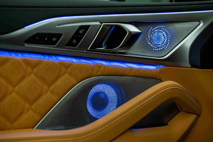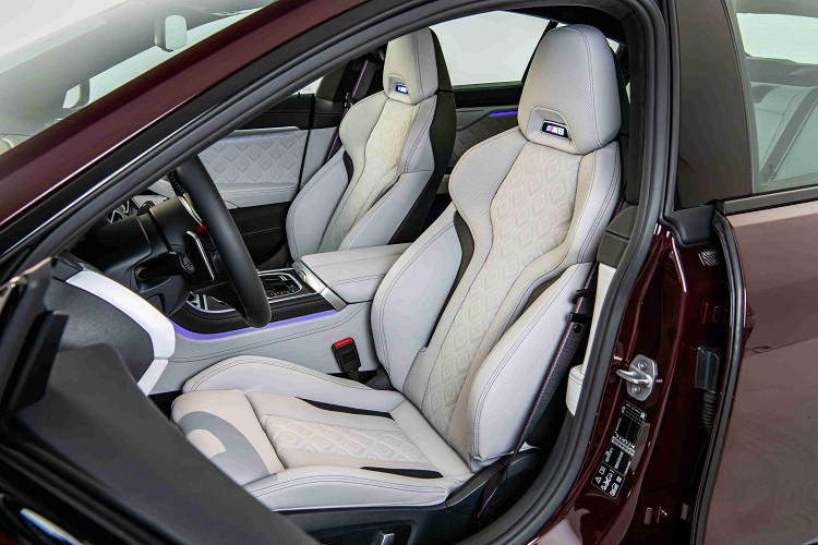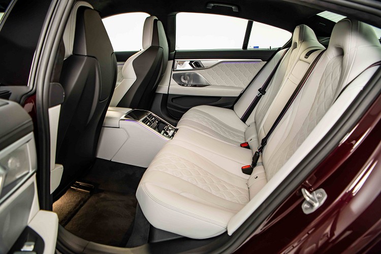 全新BMW M8 Coupe與M8 Gran Coupe的內裝設計富含與生俱來的跑車性格與內涵,使用Merino真皮的M專屬雙前座電動座椅含記憶、通風、加熱與電動腰靠功能,搭配黑色高光澤窗框、M縫線安全帶、真皮包覆儀表檯、碳纖維材質飾板與Individual Alcantara麂皮車內頂篷,為車室增添不可言喻的奢華感受;後座採用40/20/40分離可傾倒後座椅背,讓空間更能靈活運用。BMW M8 Gran Coupe車型為讓後座乘客有更舒適的乘坐體驗,除頭部與肩頸有更寬闊的活動範圍,更較Coupe雙門車款增加201mm的腿部區域,搭配豪華型四區恆溫空調以及電動後窗簾、後檔窗簾及後側窗簾,營造出極舒適且私密的個人空間。
