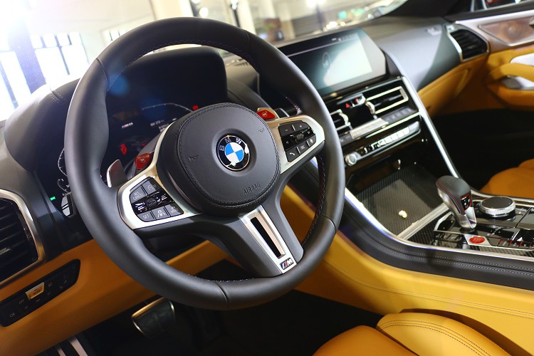 全新BMW M8 Coupe與M8 Gran Coupe的內裝設計富含與生俱來的跑車性格與內涵,使用Merino真皮的M專屬雙前座電動座椅含記憶、通風、加熱與電動腰靠功能,搭配黑色高光澤窗框、M縫線安全帶、真皮包覆儀表檯、碳纖維材質飾板與Individual Alcantara麂皮車內頂篷,為車室增添不可言喻的奢華感受;後座採用40/20/40分離可傾倒後座椅背,讓空間更能靈活運用。BMW M8 Gran Coupe車型為讓後座乘客有更舒適的乘坐體驗,除頭部與肩頸有更寬闊的活動範圍,更較Coupe雙門車款增加201mm的腿部區域,搭配豪華型四區恆溫空調以及電動後窗簾、後檔窗簾及後側窗簾,營造出極舒適且私密的個人空間。