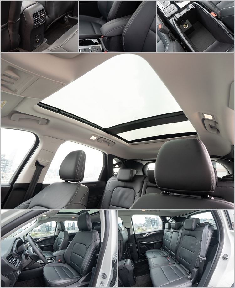 ![]() ▲新世代Ford Kuga國產車型共推出:EcoBoost 180雅致型(受訂生產)、EcoBoost 180時尚型、EcoBoost 180旗艦型、EcoBoost 250 AWD旗艦型、EcoBoost 250 AWD ST-Line共五款車型。全新Kuga採用全新C2底盤,軸距增加至2,710mm,車長亦拉長85mm;頭部空間最高增加35mm,後座則具有前後滑移與 6/4 分離功能,並附行李廂後座快傾拉桿;旗艦型以上更搭配寰宇全景式電動天窗與足踢感應式電動尾門。