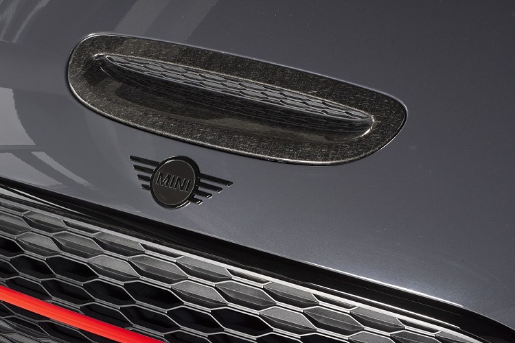 全新限量MINI JCW Clubman ALL4 Challenger Edition以純然賽道風格的深灰色基調打造,細節處恰如其分地點綴著充滿競技感的紅色。Melting Silver銀色車頂與低調中散發出強悍跑格的Thunder Grey深灰色車身塗裝相得益彰;常規販售車型中的鍍鉻部件在Challenger Edition中皆霸氣升級Piano Black黑色高光澤材質,包含MINI Logo、Clubman車型銘版、車門與尾門把手、頭尾燈與水箱護罩外框,更添運動氣息;而Chili Red紅色後視鏡外蓋與車身多處紅色元素刻畫出JCW為賽道而生的競速精神。以碳纖維材質製成的進氣口飾板,更在視覺上賦予強烈的性能化身份表徵,全然展現MINI JCW Clubman ALL4 Challenger Edition霸氣十足的王者之姿。