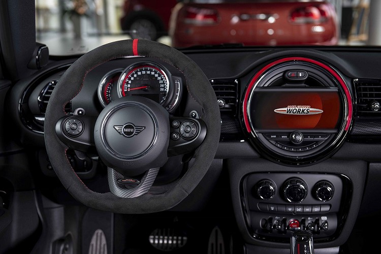 進入座艙,包覆性極佳的JCW筒型賽車座椅與JCW Alcantara麂皮賽車方向盤正上方的紅點標記,即刻體現MINI JCW Clubman ALL4 Challenger Edition的賽車本質。紅色縫線環繞的JCW麂皮方向盤在激烈操駕時為駕駛帶來絕佳競技手感,方向盤3點鐘與9點鐘方向的換檔撥片,更讓駕駛得以根據當下路況快速進退檔,熱血征服前方道路。標準配備8.8吋原廠導航系統、Apple CarPlay與Harman/Kardon高傳真音響系統,不僅為座艙空間增添精品質感,更在熱血駕馭中提供美妙的娛樂與聽覺饗宴。