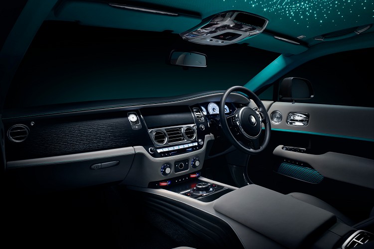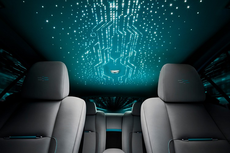 一旦坐進車內,在光線助力之下,Wraith “隱匿之鑰” 特別版車型獨有的雙色星光頂,展現出充滿資料神秘魅力的圖案。車門內側向下散發螢光的儲物袋設計,也通過光影、皮革、縫線的搭配及呼應,呈現出待解的密碼。車內的中軸處及其周圍縫線不僅淋漓盡致地體現了勞斯萊斯汽車的至臻工藝,同時也與儲物袋的縫線相互呼應,這一設計也暗示著車主在探秘過程中對於本源的執著追求。