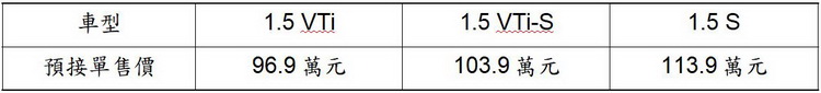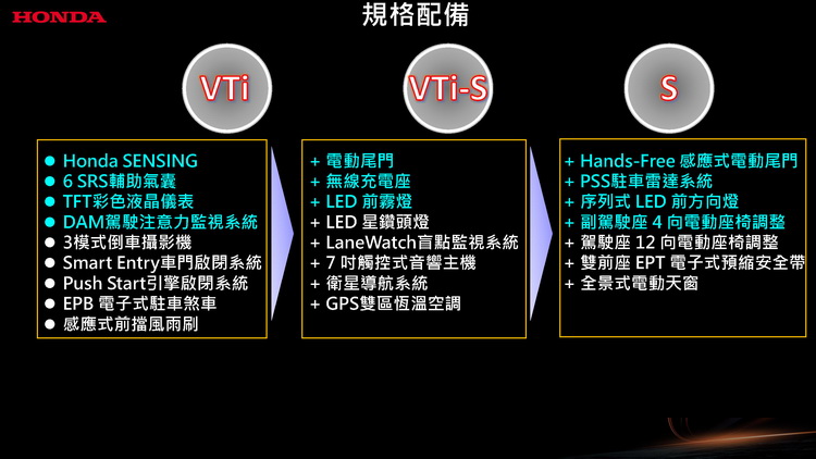 配合這次改款,全車系陣容也有所調整,增加入門級的1.5 VTi車型,以百萬元內的售價強化在價格上的競爭力。全車系也將Honda SENSING及6 SRS輔助氣囊等先進安全科技列為標準配備,9月3日上市後正式售價與預約售價間的差額,將採多退少不補原則。