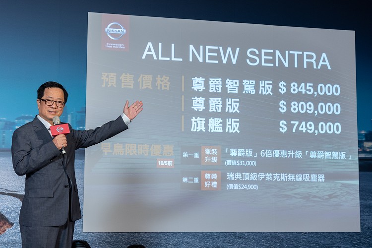 裕隆日產表示,為感謝所有支持熱愛Nissan的車主,Sentra自即日起至10月5日止,預售優惠限時開跑,凡於預售期間下訂Sentra「尊爵版」車規僅需加價5,000元,便可享優惠升級6倍送「尊爵智駕版」車規價值31,000元;入主任一車規,即送價值24,900元的「瑞典頂級Electrolux伊萊克斯無線吸塵器(PQ91-3BW)」,讓消費者超值入主新世代獵駕。