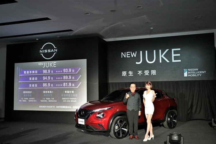 NISSAN NEW JUKE自11月6日預售以來就廣受各界好評,預售訂單已創下超過200張佳績。裕隆日產汽車誠摯感謝廣大消費者的支持與肯定,宣布NEW JUKE正式上市,共有三種車規編成:「英倫版」86.9萬元、「駕趣版」94.9萬元、「駕趣享樂版」98.9萬元,並自即日起至11月30日止,正式展開限量早鳥優惠。