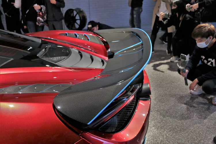 在車尾部位則是採用專屬開發的加長加寬版尾翼,這支維持維持了原廠可自動升降、改變角度的機能,後車尾的下壓力與導流性能更佳,並且有類似McLaren原廠的Longtail長尾巴視覺感,這片尾翼也可以選擇裸碳纖維表面處理,後保桿除了更為寬闊,保桿兩側也有特殊的導流孔與翼板設計。
