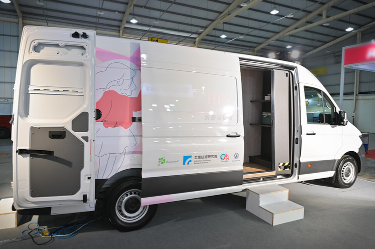 Crafter新世代健康行動車![]() ▲Crafter新世代健康行動車照透過智慧科技解決女性隱私與不便的問題,藉以提供HPV人類乳突病毒快篩服務,用行動呵護女性的健康。另一輛焦點新車為以福斯商旅旗下最大車款Crafter作為基礎,目標打造無須醫護人員觸診、由婦女自行以快速且容易篩檢人類乳突病毒的服務的「新世代健康行動車」。此車由福斯商旅、工業技術研究院、健康新體驗股份有限公司、重安福祉科技有限公司共同研發之無接觸式健康篩檢車概念,選定國內女性癌症發生率第一名子宮頸癌篩檢,打造零接觸式的豪華、舒適行動HPV篩檢車,藉以早期預防子宮頸癌的發生機率,守護著女性的健康。