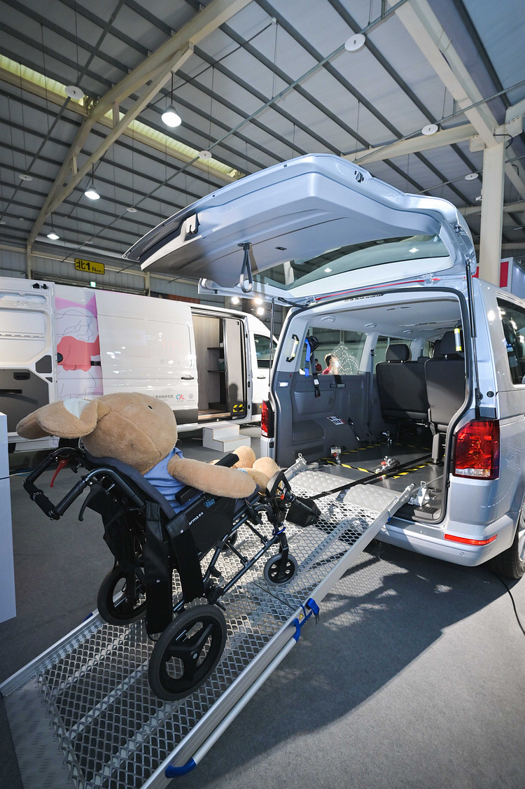 T6.1 Caravelle青銀共享車![]() ▲福斯商旅展示T6.1 Caravelle青銀共享車(左)以及Crafter新世代健康行動車(右),以多元的改裝車款實踐不同消費族群的用車理念。這款車同時鎖定無障礙移動與露營機能,強調銀髮樂齡以及露營休閒都可滿足。車身是以T6.1 Caravelle IPC無障礙福祉車作為基礎,與國內無障礙福祉車改裝業者,也是德國福斯原廠認證車體改裝之夥伴,輔康企業有限公司攜手合作,運用T6.1 Caravelle 150 L長軸車型為基礎,植入可以快速拆卸、安裝,且重量僅有24公斤的鋁合金斜坡板。只需要透過安裝於車底的簡易扣具就能夠輕鬆安裝、拆卸,且承重上限可達400公斤之多,甚至可以對應電動輪椅等使用者需要。 ![]() ▲T6.1 Caravelle青銀共享車以IPC 福祉車為主體而衍伸出不同的生活機能,可滿足銀髮樂齡以及露營休閒等全方位的用車需求。