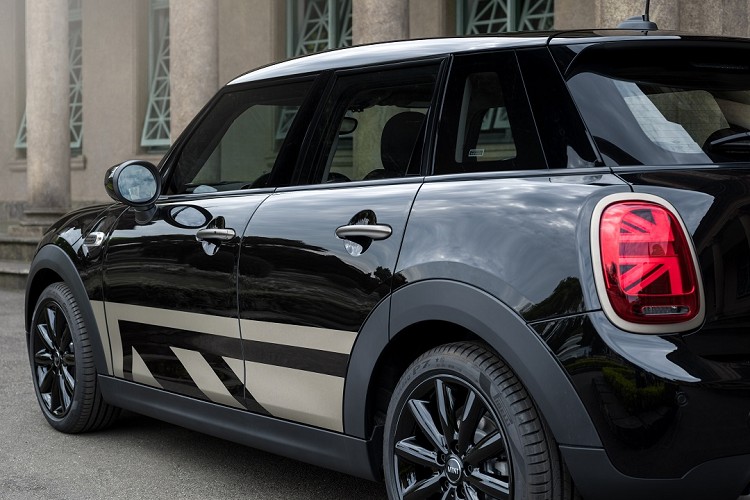遇見MINI Frozen Brass Edition的第一眼,目光旋即被車側醒目的英國旗飾條所吸引。深邃車色輔以大面積黃銅色英國旗幟圖案,高調展現不容錯認的英國血統。有別於一般擁有鍍鉻門把設計的MINI掀背車型,MINI Frozen Brass Edition前後座車門把手以和車側英國旗飾條一致的銅色元素打造,輔以黑色高光澤處理環窗腰線、17 吋Cosmos Spoke 黑色輪圈,為車側視覺提供高度協調性與出眾質感。