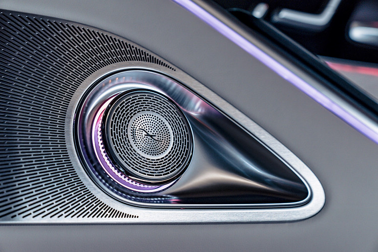 ![]() 除被動隔音效果絕佳,此車款標榜具備主動式抗噪技術,運用擁有31具揚聲器的Burmester 高階 4D 環場音響系統,透過麥克風與車速感知器接收環境音頻,並利用全車七具重低音輸出反向聲波,達到主動抗噪效果。