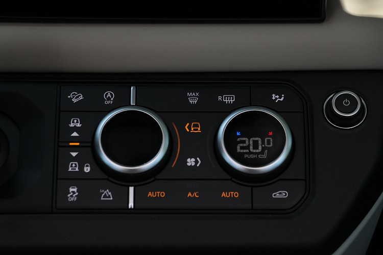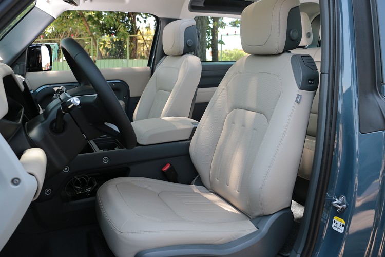 車室空間採5人座設定,2,587mm的軸距創造與The New Land Rover Defender 110車型近乎相同的乘坐空間舒適表現。雙前座座椅搭載粒面皮革與6項電動調整功能,包含四項電動腰靠與椅背傾斜,提供駕駛人良好的駕駛坐姿。後排座椅可40:20:40分離式傾倒,兼容乘坐空間與載物收納需求,以靈活且多變的空間機能滿足日常生活與戶外探索的各種需求。此外,90車型擁有全車系唯一可供選配的折疊式帆布車頂,提供消費者獨有的風格品味座駕。