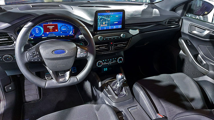 ![]() ▲Focus ST外觀配備競技型 Performance Pack套件突顯純正鋼砲血統。外觀設計方面,配有專屬ST銘牌標誌的車頭蜂巢狀水箱護罩、ST專屬運動化大型擾流尾翼、雙邊單出尾管、ST專屬迎賓踏板與車尾ST專屬銘版,另外,Michelin 19吋 Pilot Sport 4 S高性能跑胎及大型紅色卡鉗(前雙後單活塞組)也是手排款的標準配備。內裝設定上,同樣配置運動碳纖維紋路飾板搭配闇黑頂篷、ST專屬RECARO跑車座椅、位置優化的三踏板設計,而ST專屬平底運動化方向盤則於右側多功能按鍵附「S」按鍵與「Mode」選擇模式鈕。 ![]() ▲12.3吋全彩LCD液晶智慧多功能儀錶板,並內建彈射起步功能。![]() ▲Focus ST 6MT不僅滿足源自賽道的熱血信仰,鋼砲車型更完美符合日常實用。