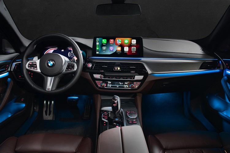 在科技氣息十足的駕駛者導向座艙氛圍之中,全新BMW 5系列更施以精緻材質鋪陳,車室空間大量運用黑色高光澤與鍍鉻材質點綴,不僅配備環艙氣氛燈組與大幅提升座艙舒適性表現且與旗艦車款同級的豪華型四區恆溫空調與B柱冷氣出風口,520i Sport及520i M Sport更升級Sensatec透氣皮質包覆的雙前座跑車座椅,並加入椅背透氣孔與縫織菱格紋,整體觸感更為柔軟舒適,而520i M Sport車型以上更全面採用電動玻璃天窗及harmon / kardon高傳真音響系統(含16具揚聲器),結合同級距最長的2,975mm軸距,造就極其舒適的後座寬敞乘用空間;至於530i M Sport與530i Luxury則全面升級與旗艦車款同享尊榮規格的全新車門自動緊閉系統,結合可進行20向電動調整的Dakota真皮雙前座舒適型電動座椅、Sensatec皮質儀錶檯包覆,堆砌出令人陶醉的細膩豪華質感。