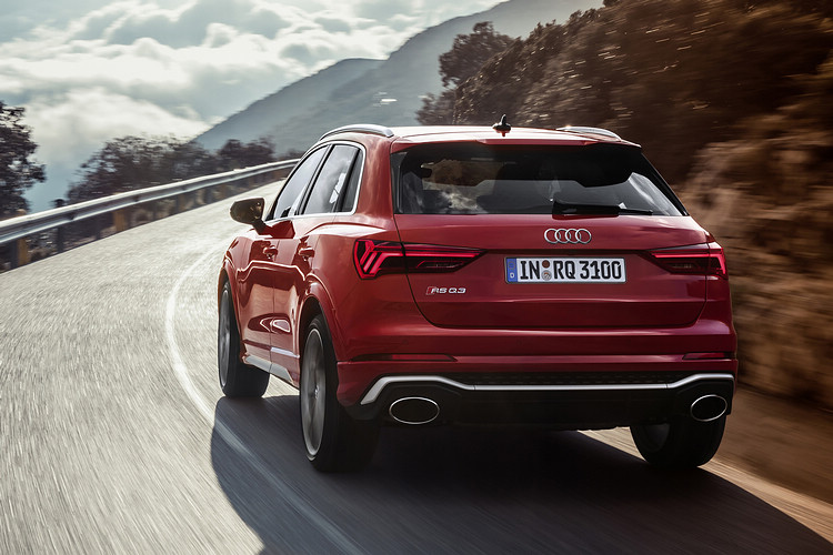 RS Q3![]() Audi RS Q3標榜集陽剛運動外型、出色性能與靈活實用機能於一身,結合RS 專屬風格搭配黑色 Alcantara 車室套件、RS 專屬碳纖維飾板與雙前座S跑車座椅而成的內裝車室設計,營造出更強烈的運動化跑格氛圍。動力搭載四環經典直列5缸引擎,可輸出最大馬力峰值400 hp 與最大扭力480 Nm,同時配置跑車式轉向系統、quattro 智慧型恆時四輪傳動系統與RS運動化懸吊,給予駕者者精準、富饒樂趣的駕馭感受。