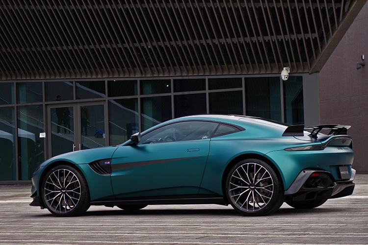![]() 搶眼尾翼設計也帶出本車型另一焦點。 F1專屬AeroKit 亮黑色擾流空力套件,包含前側下擾流片、擾流鰭、加寬側裙,以及展現視覺亮點的新型尾翼,共同打造完美空氣力學設計,在最高速度行駛下,為車體提供前、後方共計200kg的下壓力,並有效優化車身整體平衡、成就亮眼的圈速表現,ASTON MARTIN 以F1 賽事精神貫穿Vantage敏捷狂放的優越本質,詮釋為賽道而生之競速靈魂。