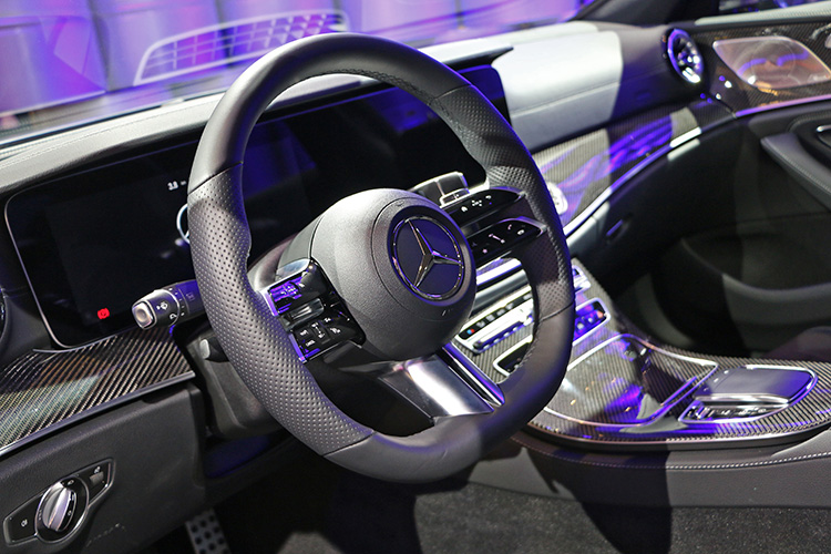 ![]() ▲小改款標配最新 Nappa 真皮平底跑車方向盤,三向雙肋式設計搭配電容式觸控多功能按鈕,輕鬆切換行車資訊。CLS豪華等級比照E-Class,小改款內裝除了細膩質感的中控台及環艙,還新增亮面灰色木紋飾板及霧面棕色胡桃木飾板,搭配 64 色環景式氣氛燈,讓車室更顯艷彩繽紛。標配還包括ARTICO/DINAMICA運動座椅,以及三向雙肋式設計的最新 Nappa 真皮平底跑車方向盤,納入電容式觸控多功能按鈕,搭配作為標配的抬頭顯示器,讓駕駛透過MBUX 多媒體系統、無線充電及 Smartphone Integration 智慧型手機整合系統,以簡單口語指令就可以無時差控制車室溫度、調整車室氣氛燈等功能。 ![]() ▲全新配備的電容式觸控多功能平底跑車方向盤,採用Nappa 真皮包覆,質感與功能性更為上乘。