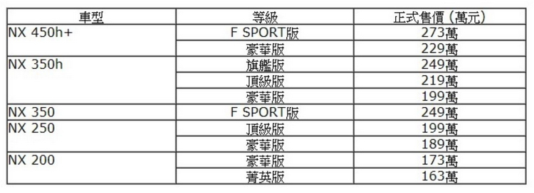 Lexus總代理和泰汽車於11月16日啟動全新NX預售後,以5種動力10個等級吸引大量消費者下訂搶購,累計訂單已超過3,000多張,而總代理和泰汽車也在12月20日舉辦上市發表會,並公佈正式售價。