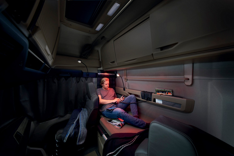 MAN TG 系列全面配置全新研發的座艙,以人因工學為出發點,單以一般車款不以為意的階梯就能看出 MAN 的細膩與對車主使用習慣的洞悉。透過全新設計的登車踏板, 其所採用的階梯式分層設計,結合幾乎等同於九十度的開闊車門啓閉角度與周邊裝配的 輔助照明系統,讓駕駛上下車更方便,也更安全。歸因於踩踏板的機構,均使用網狀 結構打造而成,故即便車輛在經過惡劣的泥濘道路造成髒亂,僅需用清水即可輕鬆清洗 乾淨;同時,MAN 設計團隊亦考量到駕駛上下車操作的潛在狀況,特別在車側門下 方設有四組控制按鈕,除了故障燈等既定功能,亦可因應駕駛者不同的工作需求進行個 別設定,完美彰顯客製化造車理念。 以駕駛為主要導向的座艙設計,是 MAN 展現對於需要長期駕車的駕駛者貼心的一環, 像是方向盤傾斜角度與高度可依照不同體型來做出最適當的調整。此外,座椅設計依據人體工學,可採椅背多角度、高度調整,讓駕駛都能有最舒適且不易疲累的操駕過程;駕駛艙的寬敞舒適及安全性自不在話下,司機在休息片刻時也能釋放駕駛過程的疲累,讓駕駛車輛時也能更加順心。