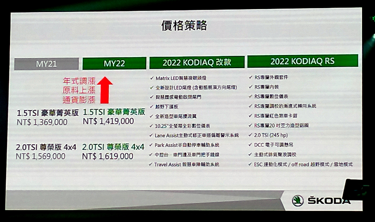 以阿拉斯加大棕熊為名的KODIAQ自2017年正式引進台灣以來,深受消費者喜愛,自2019年開始連續三年蟬聯七人座SUV銷售冠軍,幾乎每三台七人座SUV就有一台是KODIAQ。而從引進台灣市場以來,曾在德國紐柏林賽道創下七人座單圈最佳成績的性能版RS就備受消費者期待,值此改款時機,這款擁有245匹強勁馬力的KODIAQ RS終於抵台。 【相關試駕報導】SKODA Kodiaq 尊榮版TSI MY2022