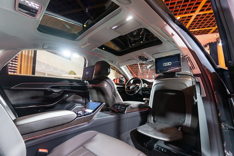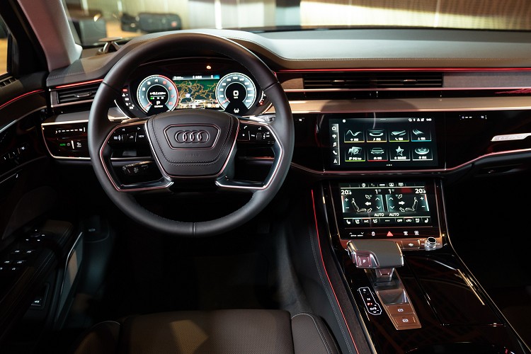 Audi A8為四環中大型車款的旗艦領航者,歷代A8更是展演每個時代Audi 創新科技與品牌設計走向的核心代表之一,新款Audi A8外觀設計採用新鍍鉻翼端帆水箱護罩設計,搭配3D 立體感的前保桿、車頭鍍鉻下氣壩及車尾鍍鉻下擾流設計更顯俐落風格;另頭尾燈亦換上新式燈光造型設計,打造新式運動優雅的自信姿態。 進入室內車艙A8搭載直覺化Audi 全數位虛擬駕駛座艙 ,及Bang & Olufsen 3D 16 聲道環繞音響系統,給予優質的視聽覺饗宴。