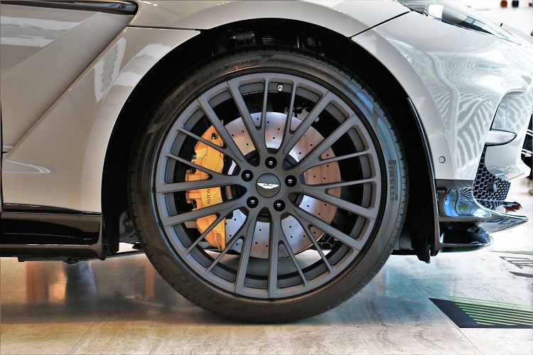 DBX707將碳纖維陶瓷煞車碟盤列為標準配備,前輪碟盤尺寸為420mm、後輪則為 390mm,配備6活塞單體卡鉗,進而使簧下重量減輕了整整40.5kg。此外,工程團隊也針對煞車系統的液壓缸徑與煞車增壓器做精密調整,改善踏板腳感與煞車回饋,掌握細節處,提升駕駛者精準體感與操駕信心;更透過車身主要進氣口與車底空氣導流之雙重冷卻技術,在廣泛溫度條件下,確保煞車性能的順暢穩定。