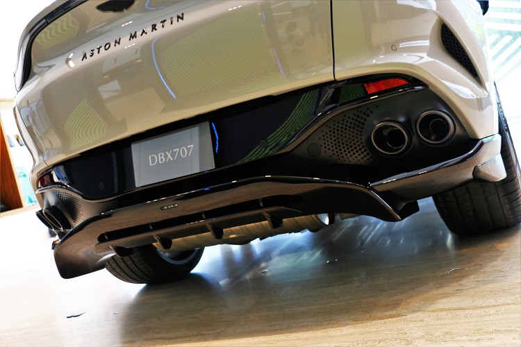 DBX707採用更大的前格柵與新款日行燈的全新車頭設計,進氣口、煞車冷卻通道以及前分流器造型亦與DBX V8相異,車頭格柵擁有更寬廣面積,除了呈現更為張狂的視覺效果,更可為高性能動力單元與9 速變速箱增加大量冷卻氣流。車頭設計仍然沿用品牌DB家族車系經典的凸字形水箱護罩,傳承ASTON MARTIN超越百年的純正英倫血脈。