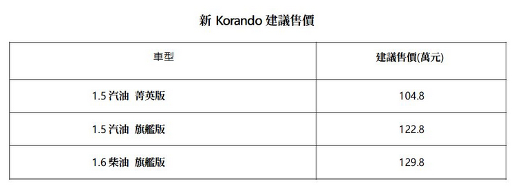 在七月初以104.8萬元起開始預接單的SSANG YONG第四代Korando在國內正式發表。消費者反應踴躍甚至已超過原廠所提供之年度配額。總代理永嘉雙龍正積極與原廠溝通產能,希望能盡速於 9 月前到港交車。