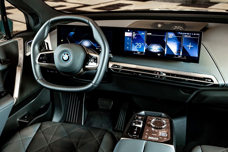 以強悍M血統加持的全新BMW iX M60,大器俐落的車身線條結合直立封閉式雙腎型水箱護罩、纖細鋒利的智慧雷射頭燈、無窗框設計、隱藏式車門把手、專屬銅色外觀套件與融入尾門線條的纖細尾燈設計,堆砌出無與倫比的前衛風格,更將領先業界的Shy Tech隱形科技與美學工藝完美揉合,採用具備特殊自體修復塗層的封閉式雙腎型水箱護罩,內含攝影鏡頭與雷達等高科技傳感系統,而充滿性能風範的專屬獨特車身細節,如前葉子板專屬銅色鑲邊M徽飾、車尾專屬銅色鑲邊車型銘牌、藍色M煞車套件以及22吋M銅色飾條空氣力學輪圈,大幅強化iX的科技前衛風格,以透過畫龍點睛的手法展現iX M60源自於BMW M GmbH的剽悍身影。