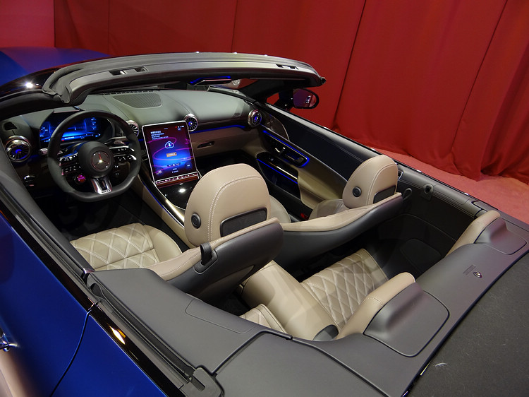 新一代SL回歸2+2座椅設定,軟頂敞篷擁有15 秒快速開合設計,搭配豪華 Nappa 真皮內裝、64 色氛圍燈的環景式內裝照明、MBUX 多媒體及擴增實境導航系統,展現兼容人性科技、舒適豪華與經典美學的設計理念。