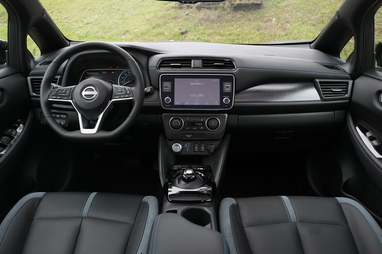 全新2023年式NISSAN LEAF車身藉由模擬實際空氣流動環境進行空氣力學開發,垂直切削車體兼具導流和隔絕噪音,搭配具擾流功能尾翼,降低氣流阻力,減少風阻所造成的能源損耗,更首度換上NISSAN新世代廠徽,外觀採用全新設計V-motion黑化水箱護罩、以及全新17吋六爪式電馭鋁圈,融合科技、現代、先進為一體的設計感。車色以珍珠白車身搭配淬鍊黑車頂two-tone設計為主,另外可以相同車價接訂生產天空藍車身搭配淬鍊黑車頂及淬鍊黑二款車色,供車主多種選擇。內裝導入高質感皮椅,附前/後加熱座椅功能,提升駕駛及乘客的乘坐舒適度。