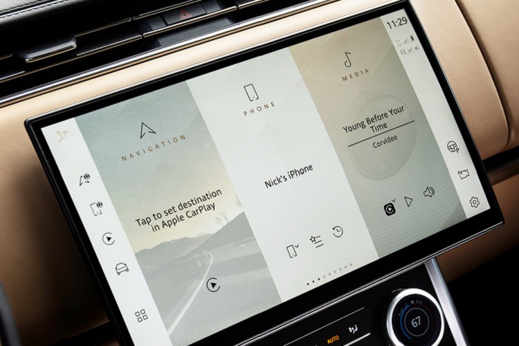 The New Range Rover 搭載多項便利舒適配備與尖端科技廣泛應用,使每趟旅程中的所有成員皆能擁有更為優雅且尊榮的舒適乘坐體驗。前、後車門具備自動吸附緊閉功能,後尾門同樣具電動感應啟閉功能,開關時皆能輕鬆完成;搭載 ClearSight 車內電子後視鏡並具備自動停車輔助功能,即便穿梭於都會之中,仍提供駕駛人十足的駕駛信心。進入車內,中控台採用全新的 13.7 英吋全數位化 HD 懸浮式儀錶板與 13.1 英吋曲面觸控螢幕組成,搭載 Pivi Pro 多媒體影音娛樂系統,清晰整合完整車輛資訊;同時,曲面觸控螢幕擁有觸覺回饋功能,使駕駛員更能精準操作車輛設定,系統兼容無線 Apple CarPlay® 與 Android AutoTM,提供多元且全面的資訊輔助。全車資訊系統擁有多達 70 個模組可透過 SOTA 進行線上更新,使車輛隨時保持在最佳狀態;結合手機無線充電、車前抬頭顯示器等便利配備,提供更為輕鬆愜意的駕駛體驗。