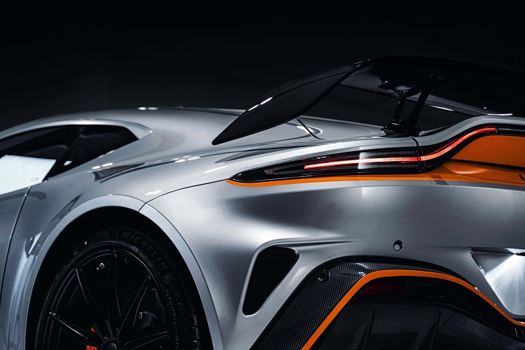 車身重量的減輕來自於輕量化材質的運用,包括碳纖維前保桿、蚌式引擎蓋、前兩側葉子板、側裙及車頂和後分流器,以及使用複合材料的後保桿與行李箱蓋,並採用輕量化電池與特殊雙尾管排氣系統,此款全新排氣系統由 1mm輕量化不銹鋼材質製成,與安裝於一般版本 Vantage上的材質相比,減少約 7.2 公斤。經過各部件的細膩調整後,確保 V12 Vantage 在聲浪表現、外觀設計與性能動態上,完成無懈可擊的巧妙搭配。