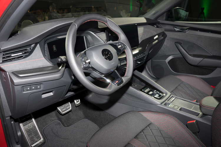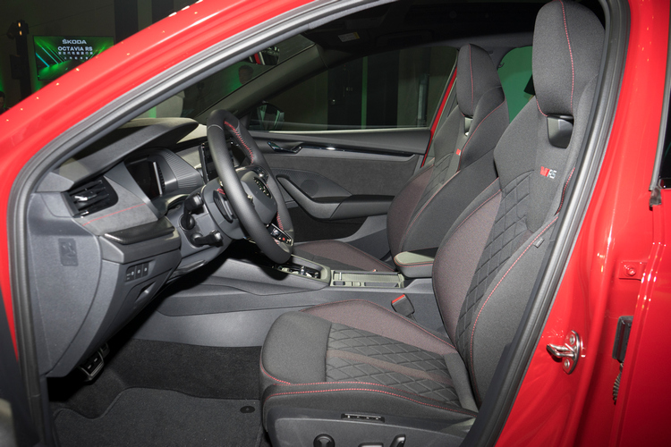 在內裝風格上,除了延續先前OCTAVIA車系已經擁有的Info Sense智慧直覺數位化座艙:10.25吋數位儀表、同級唯一10吋CNS3.5多媒體聲控主機、HUD投影式平視顯示器之外,全彩數位儀表更增添了RS運動模式、10吋的主機中則有RS專屬歡迎Logo與動畫。當然還有跑車座椅、碳纖維飾板、隨處可見的紅色車縫線等在在凸顯出RS的運動化氛圍。