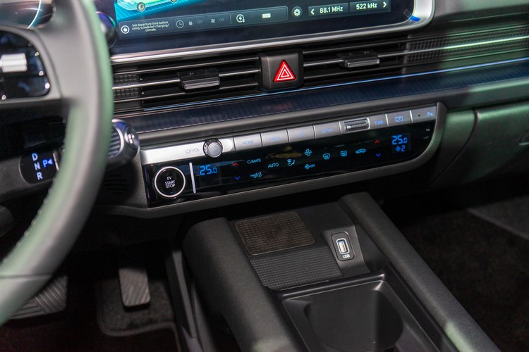 車室內受惠於先進E-GMP電動車模組化底盤,IONIQ 6軸距長達2,950mm,短前後懸設計將空間最大限度保留給乘座,不僅前座舒適,後排空間更是寬敞。後座則提供V2L( Vehicle To Load )外接供電功能,具備雙向電力供應能力,隨時隨地提供電能補充,滿足各式各樣的用電需求。