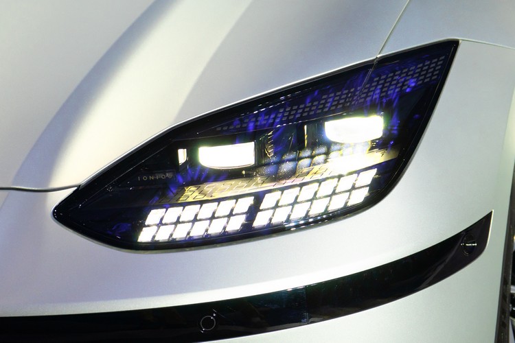 最高識別的「 Parametric Pixels 」參數化設計元素大量應用於IONIQ 6,高達700個Pixels Light數位像素LED燈,包含車頭LED日行燈、車尾貫穿式LED尾燈、LED倒車燈,運用IONIQ標誌性的像素化設計,打造獨特且充滿科技感的前衛風格。首次導入IFS智慧動態頭燈照明系統,自動偵測周圍車輛並迅速變更燈型調節照明,提升行車的安全性同時保有清晰的行車視野。