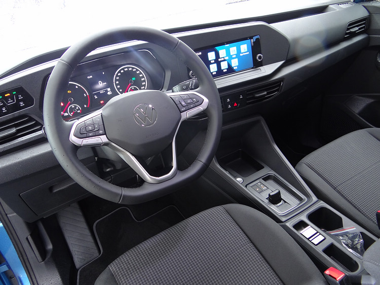 座艙配置數位觸控儀錶板和8.25吋觸控螢幕,整合多媒體影音,行車資訊、多媒體系統、IQ.DRIVE智能駕駛輔助等功能,搭配電子線傳式排檔系統、按鍵式電子手煞車原廠影音系統,提供便利貼心的用車環境。Caddy California標配IQ.DRIVE智能駕駛輔助系統,整合全速域ACC、Front Assist車前碰撞預警系統、RTA後方橫向車流警示系統、Side Assist車側盲點警示系統、Rear Assist顯影式停車導引系統、駕駛疲勞偵測警示系統、MCB二次碰撞預煞系統等;並配置Lane Assist車道維持及偏移警示系統(含修正輔助功能)。被動安全方面,則標配含駕駛艙中央氣囊的7組氣囊。